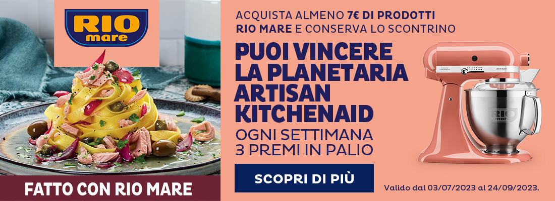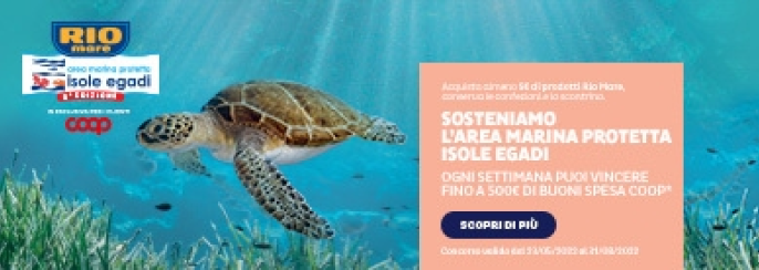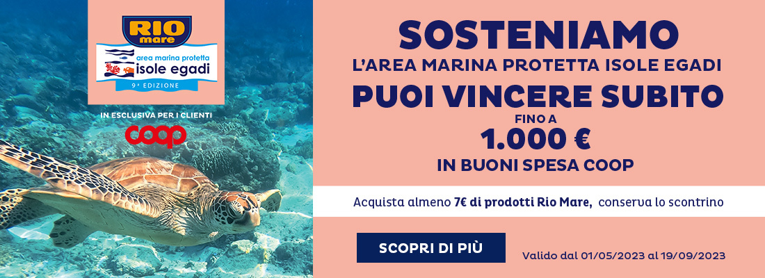 Acquista almeno 5€ di prodotti Rio Mare e puoi vincere fino a 500€ in buoni spesa Coop! valido dal 23/05/2022 al 31/08/2022.