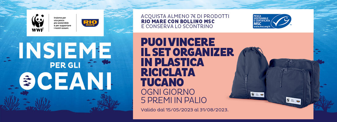 Acquista almeno 5€ di prodotti Rio Mare MSC e puoi vincere il borsone in vela riciclata! Valido dal 16/05 al 31/08/2022.