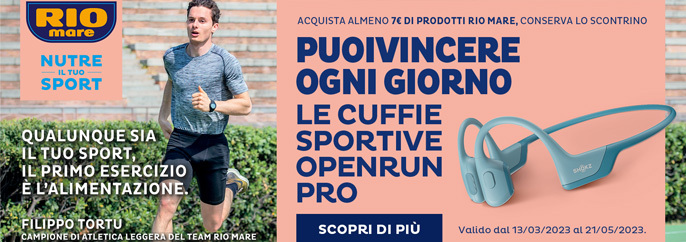 Acquista almeno 7€ di prodotti Rio Mare e puoi vincere le cuffie OpenRun. Valido dal 13/3/2023 al 21/05/2023.