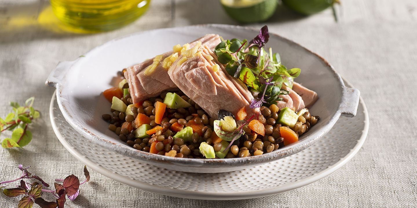 Filetti di tonno lime e zenzero con insalata di lenticchie