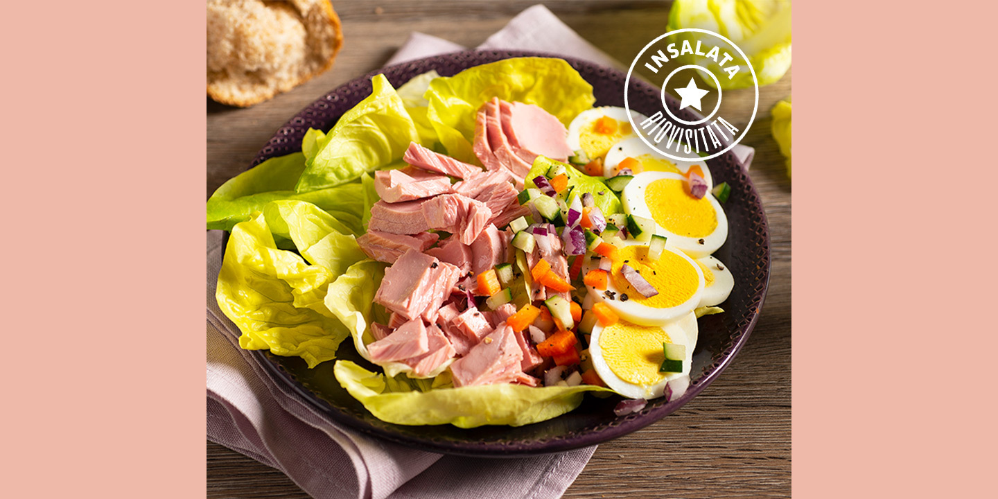 4. Deponete sopra all’insalata le uova sode e i filetti di tonno ben sgocciolati.