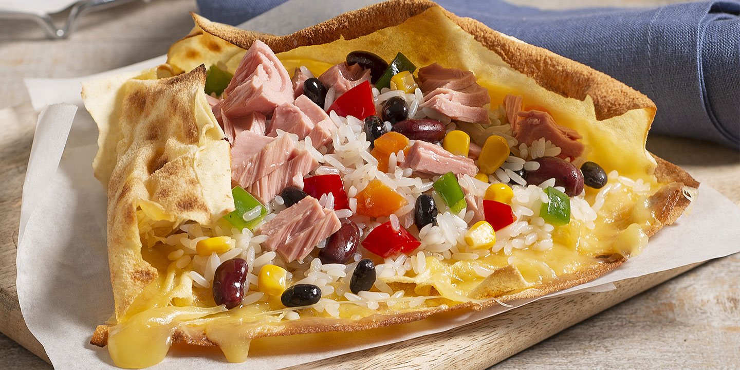 2. Adagiate le Insalatissime Piccantina, dopo averle mischiate bene e suddiviso in pezzetti il tonno, sopra al pane o alle piadine ben calde chiudetele finché sono morbide in modo da ottenere una specie di burrito e gustate immediatamente.