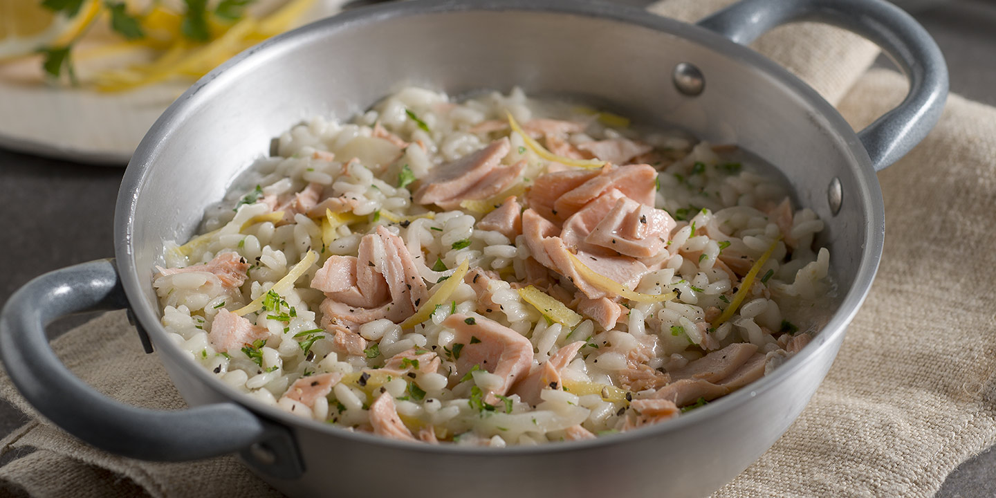 HomeRecipesRisotto delicato con salmone e scorza di limone