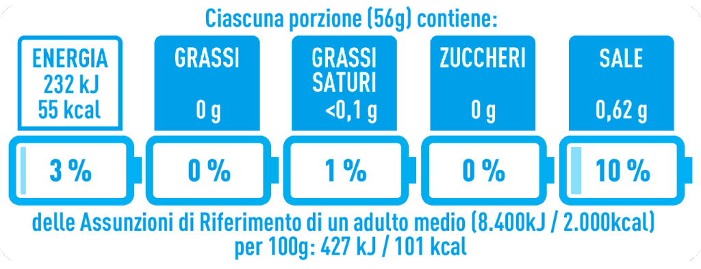 HOZZÁVALÓK: tonno*, acqua, sale, aroma naturale di sedano e cipolla.